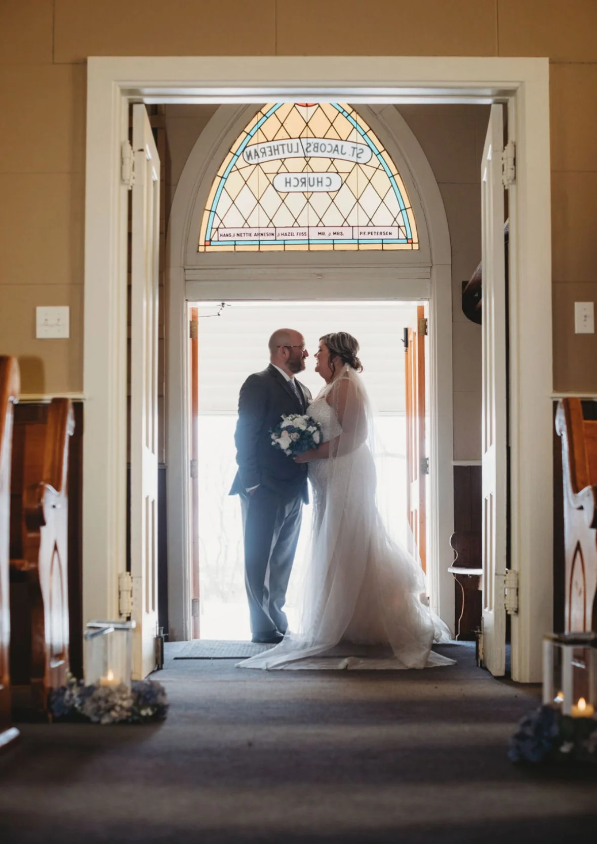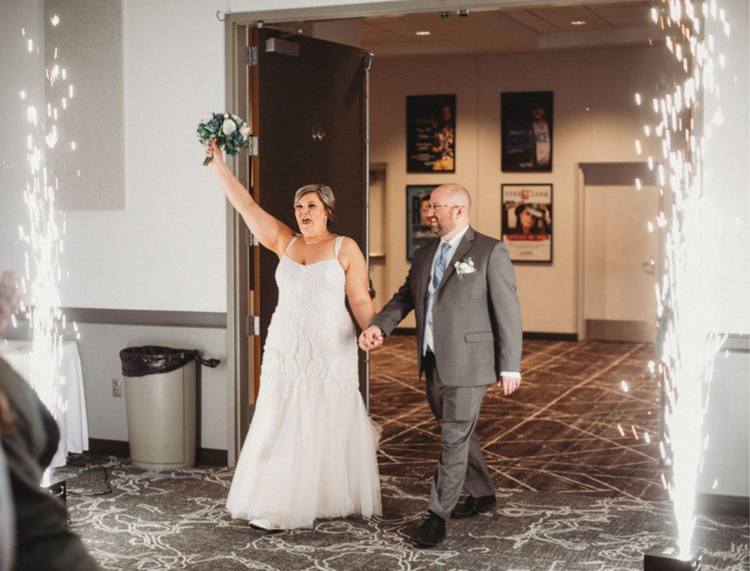 “Our day was a typical chilly winter day, with just a dusting of snow. We had our first look at one of our favorite date night spots. Our ceremony was absolutely perfect in the little country church where I attended since I was born. Our reception was filled with all of our favorite people, wonderful food and so many incredible memories.”