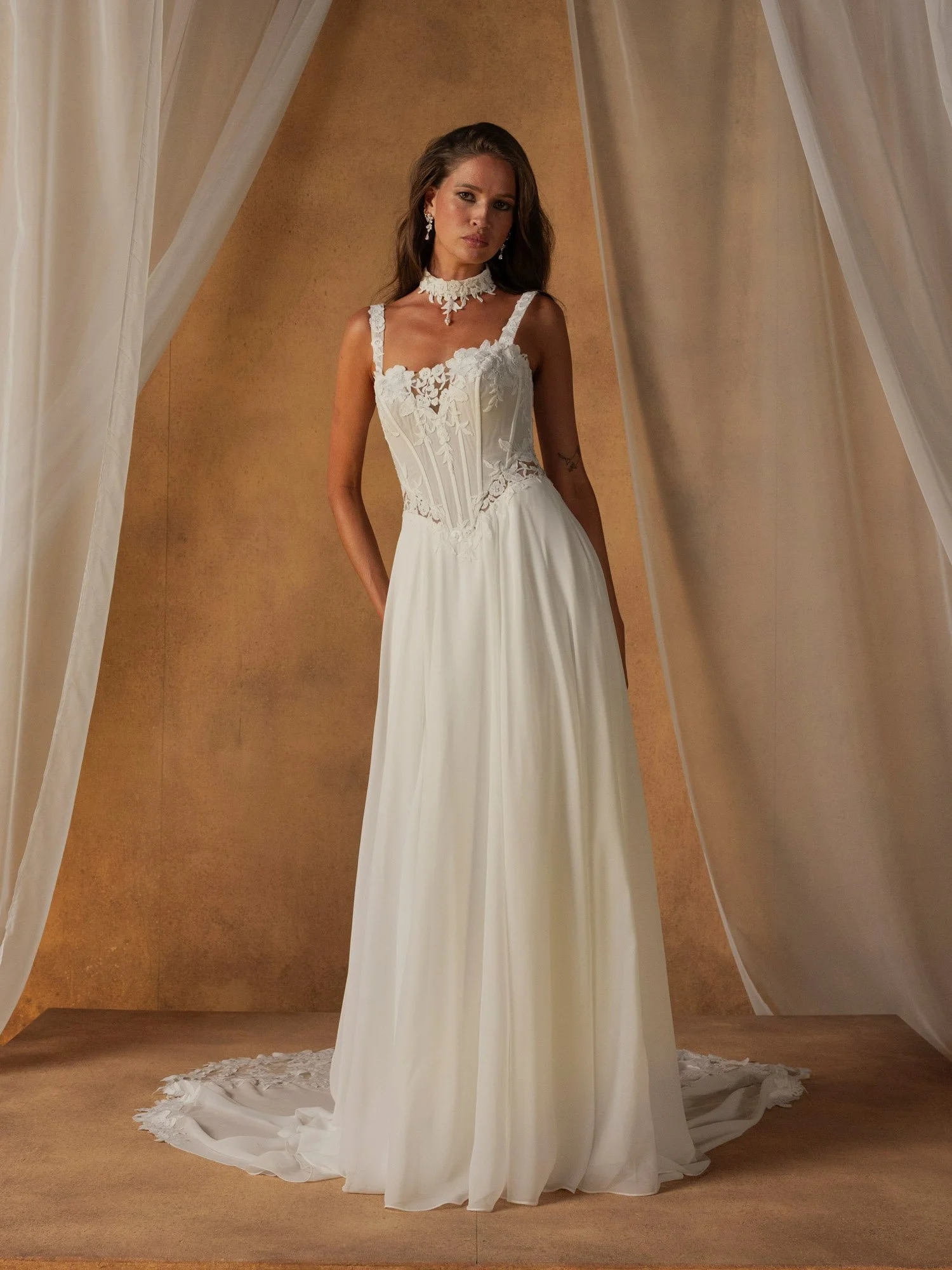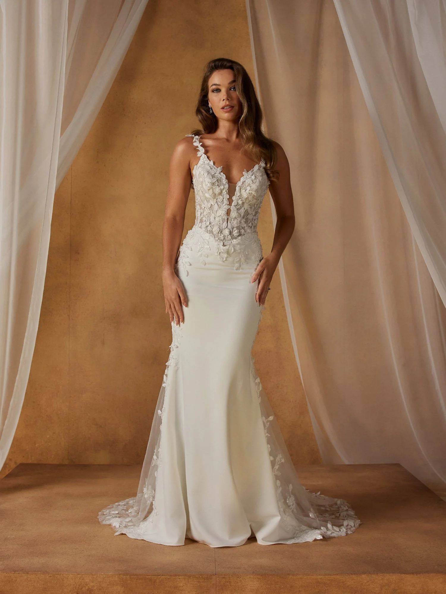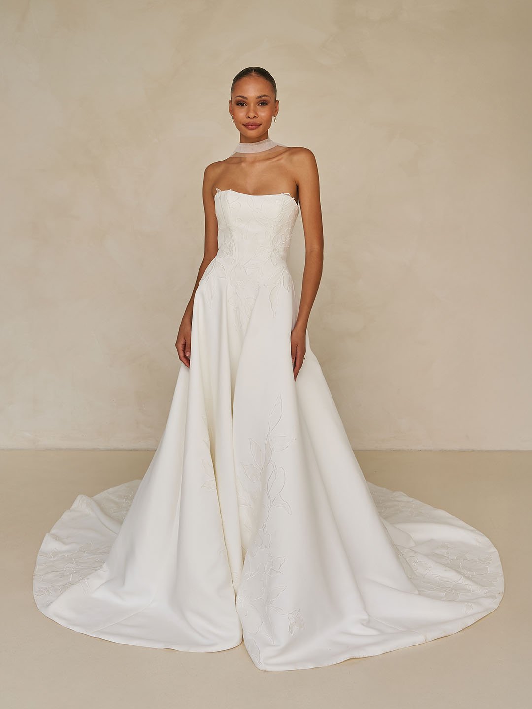 Above all else, those behind the Madi Lane brand and Madi Lane brides are hopeful romantics who are in love, with love. Who turn away from trends and rewrite traditions. Who are driven by a passion for life and all its beauty. Who strive to capture modern, elegant simplicity and encapsulate it within keepsake gowns, and who do it all with passion and love for every Madi Lane bride. Each creation’s signature style is signed off with a sprig of wattle – the delicate floral emblem of Madi Lane. This is the first step in seeing that emblem travel to your corner of the globe. We hope you will join us on this exciting journey of discovery. Browse by gown silhouette and screenshot your favorites to try on during your appointment!